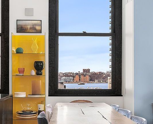 Modern luxuryNorth- and west-facing exposuresMiele appliancesMotorized shadesIndustrial dramaCorner loftRiver views