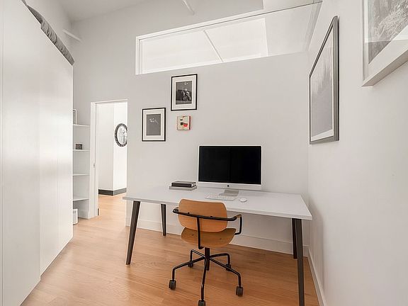 Thoughtfully redesigned, the residence now features two full baths, a flexible second sleeping area/home office, extensive custom storage, new double-paned glass windows, and an in-unit washer/dryer.