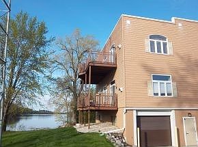 Upscale condo on 190 ft Fox River frontage. Two sets patio doors to private deck for spectacular river views. Owners have own boat slip. 1-stall heated underground parking w/basement storage area. Elevator. Superior kitchen design, cabinetry & stainless steel appliances. Washer/dryer stay. Unit was originally model Gas fireplace. Spacious master BR/Bath w/separate shower.