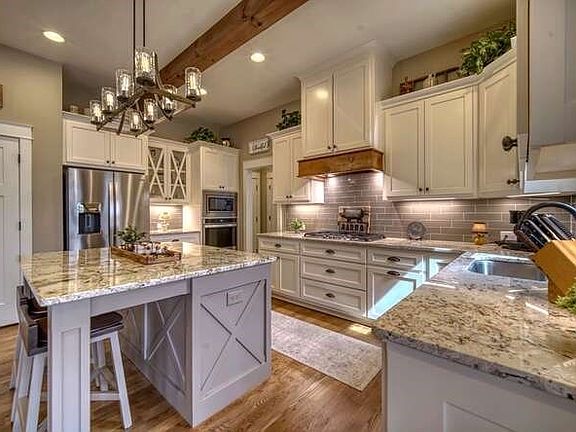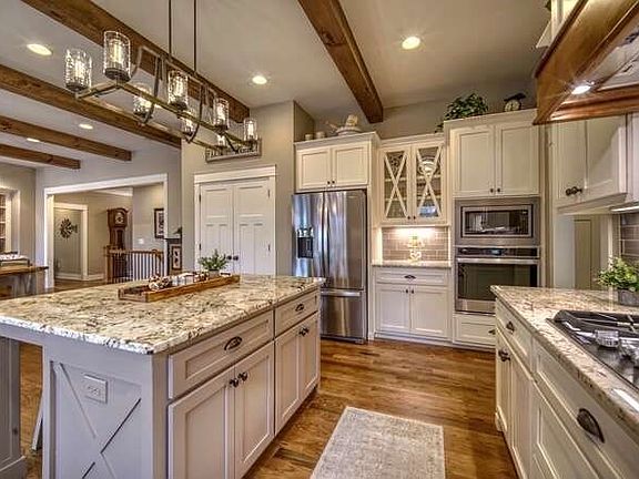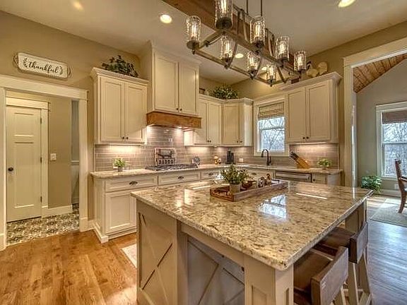Discover the epitome of luxury living with this custom 3-bedroom, 2-bathroom farmhouse style ranch home, nestled atop a private hill on a 1.21-acre cul-de-sac lot in the prestigious Owen Glen community. Built in mid-2020, this exquisite residence boasts views of the Old Union 12th Tee and Fairway Ponds, along with seasonal long-range mountain vistas, offering a serene and picturesque retreat. Spanning 2,049 square feet on the main level, the home features a master suite, convenient laundry facilities, and thoughtfully appointed guest bedrooms, while the substantial 2,049 square foot lower level is primed for customization, with stubbed plumbing for an additional great room, bedroom, bath, fireplace, and abundant storage space. Notably, the property includes an extra-large 3-car garage on the main level, complemented by an additional finished 1-car garage/shop space in the lower level, providing ample space for vehicles and hobbies. The interior is adorned with custom cabinets featuring soft-close hardware, accompanied by hardwood and tile flooring, and custom upgraded trim, walls, and ceilings throughout. The great room serves as the heart of the home, boasting custom built-in shelving and a stacked stone fireplace with gas logs, creating a warm and inviting ambiance for gatherings. Every aspect of this home has been meticulously designed, from the custom built-in shelving in all closets, pantry, and garages to the custom walk-in closets in all bedrooms, ensuring ample storage and organization. Outdoor living is equally impressive, with a covered deck featuring a stone fireplace with gas logs, an extra-large flagstone patio with a firepit, and a flagstone terrace prepped for a hot tub, all surrounded by professional landscaping that enhances the natural beauty of the wooded lot. Modern conveniences abound, including a tankless hot water heater with a recirculating pump, dual electric and gas HVAC system, fiber high-speed internet, and Cat5 and cable and cable wiring