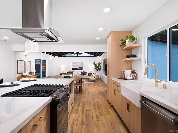 Beautifully upgraded 3 bedroom 2 bath home, centrally located in the highly desireable Clairemont neighborhood. This single story has been remodeled to perfection with designer touches and carefully planned layout. Light and bright open concept floor plan with open beam ceilings and luxury vinyl plank flooring. The kitchen features quartz counter tops and stainless steel appliances with a newly added walkin pantry. The backyard features a patio for al fresco dining....plan a garden or add and ADU with all the extra space, let your imagination run wild! Brand new Heater and A/C to keep you comfortable year round.