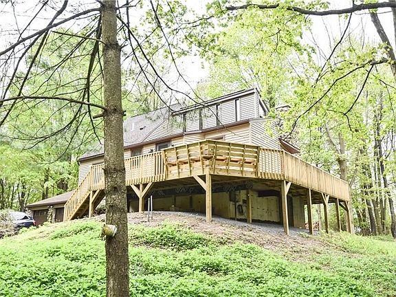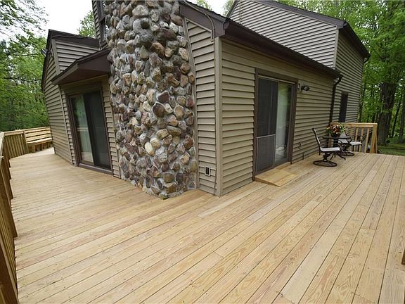 NATURES CALLING !!! Wonderful 4 Bedroom Chalet style home with NEW (2018) WRAP AROUND DECK overlooking 10 of the prettiest WOODED ACRES this side of Heaven! Balcony overlooks the HUGE GREAT ROOM w/ cathedral ceilings, Floor to ceiling Stone Fireplace, Concept windows & 2 Sliding doors leading to the Deck! Large Eating area with oak Floors ! Master Suite has cathedrals & Separate bath & Walk in closet! Full Walkout basement with FULL INLAW SETUP ( 2nd kitchen, 4th bedroom, Living room & 3rd full BATH ) !! 2 Story Barn w/ porch overlooking nature!! NEWER Thermopane Windows & Sliding Doors ! New Hot water heater! PRIVACY AWAITS YOU !! Includes 2 tax numbers totaling 10 ACRES !!