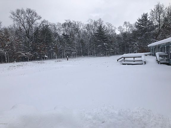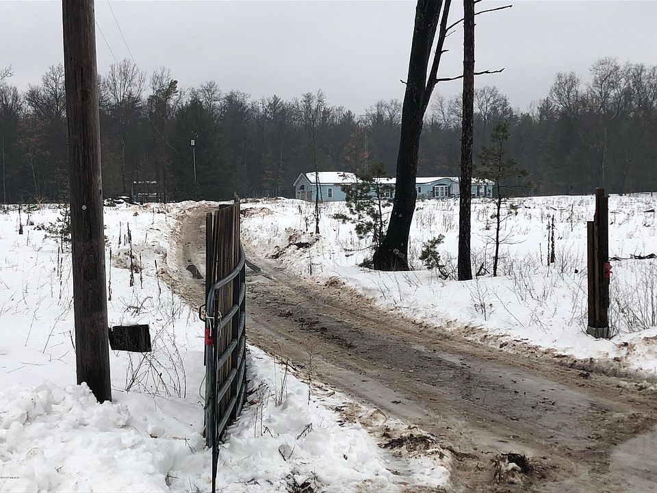 Over 28 acres of land bordering the Manistee National Forest. 3 bedroom 2 bath manufactured home with 2 car garage, all new siding, windows, and roofing. 32x40 horse barn with 6 stalls. Out door arena.