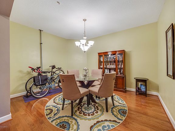 Luxurious condo living in the heart of Southside! You have all the upscale shopping and dining at your fingertips within walking distance to the Shops of Tinseltown and just minutes to the St. John's Town Center. Gated community (with gate code and building codes for access) includes a lobby, dual elevators, and a ground floor secure parking garage and storage unit. This beautiful, 3rd floor, 2 bed 2 bath unit is what condo living is all about. Featuring wood flooring, 9' ceilings, crown molding throughout, a formal dining room, solid surface counter tops, tile backsplash, and stainless steel appliances. 42'' cherry cabinets provide ample space and the kitchen bar provides a great place to sit or entertain. Spacious master bedroom. Master bath w/jetted tub, separate shower,