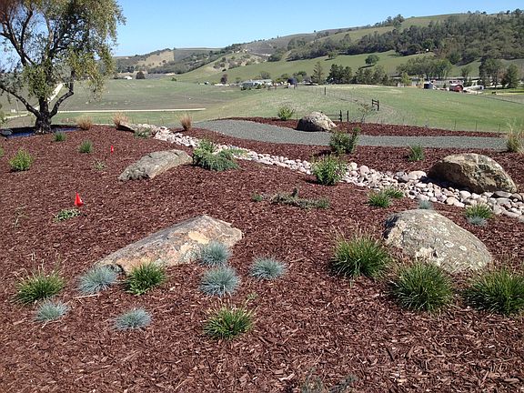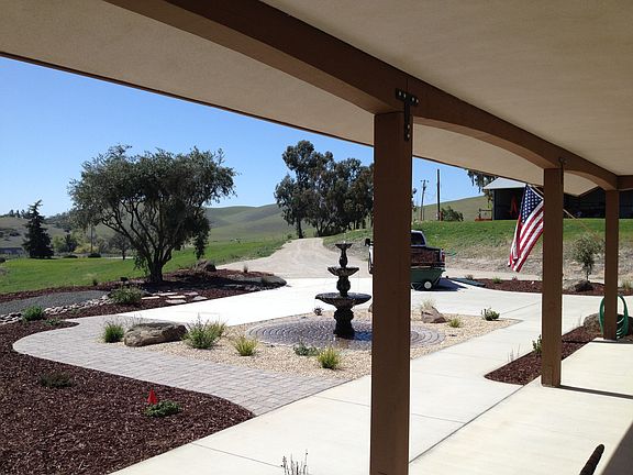 Custom home with open floor plan, stained concrete floors, custom cabinetry, granite counter tops and wood burning fireplace. Large master suite. View lot with covered porches front and rear. Professional landscaping includes 50-year old olive trees. Fully fenced 9.9 acres with steel barn and building site for second dwelling. Six acre Tuscan olive orchard.