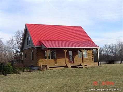 PEACEFUL COUNTRY SETTING...beautiful and well maintained LOG home with full basement situated on the rolling hills of Southern Indiana. The interior of the home features an open floor plan with warmth & character. Cozy, open loft (currently being used as the 3rd bedroom) could easily be a family room, office or keep it as a bedroom. Needing more space? The unfinished full basement is a blank canvas waiting for your personal touch. The exterior features include the following: 8x32 covered front porch, 12x32 rear open deck, 36x40 detached garage with electric & concrete floor, a personal putting green, play set & 4 absolutely beautiful acres. HVAC(2016), metal roof & all appliances remain. VISIT THIS PROPERTY!!! It is one of a kind & you will not be disappointed.