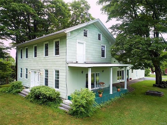 Located on 2.76 acres, this peaceful country property offers privacy while still being close to all the village of Marcellus has to offer. This 6 bedroom, 3 bath farmhouse has been updated while still keeping its original charm in woodwork, wide plank floors and front and back staircases. The bright kitchen is perfect for entertaining with an open layout and huge walk-in pantry. The first floor also features a family room with french doors to the covered porch as well as a large living room. A gorgeous front staircase leads to the second floor with 6 bedrooms including master suite, second full bath and laundry room. An attached 2 car garage provides entrance through the mudroom with closets and sink. Fruit trees, wildlife and a beautiful barn add to the appeal of this wonderful property.
