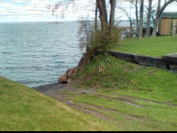 Maquam Shore, Lake Champlain -- You'll enjoy beautiful sunsets from the westerly view, plus great swimming and fishing on the 100 feet of shale beach shoreline with this waterfront property. Lot is high and dry with natural grass boat ramp, mature maples, shrubs, vegetable & flower gardens. Two car attached garage ranch style home has granite counter tops with bamboo and laminate flooring in living areas, French doors in Dining room. Views of lake from LR, DR and MBR. Lots of potential in 1000 sf unfinished basement with pellet stove and row of windows facing lake. Two bedrooms, one bath.