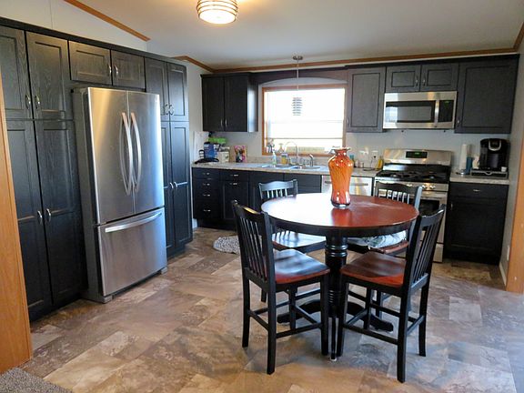 Totally renovated 2007 Skyline. Sunroom, 3 large bedrooms, 2 bathrooms, laundry, living, kitchen and dining area. New flooring & paint including ceiling throughout the whole home. New custom cabinets made by Wood Specialists, new appliances & garbage disposal. Large master with walk in closet and private 3/4 bath. Fenced yard and large maintenance free front porch.