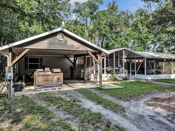 Nestled on a serene 2 acre wooded lot in the sought-after World Golf Village area, this 4-bedroom, 2-bathroom mobile home offers the perfect blend of privacy and convenience. This residence features an open-concept kitchen and living area, a split-bedroom layout with a private master suite,
