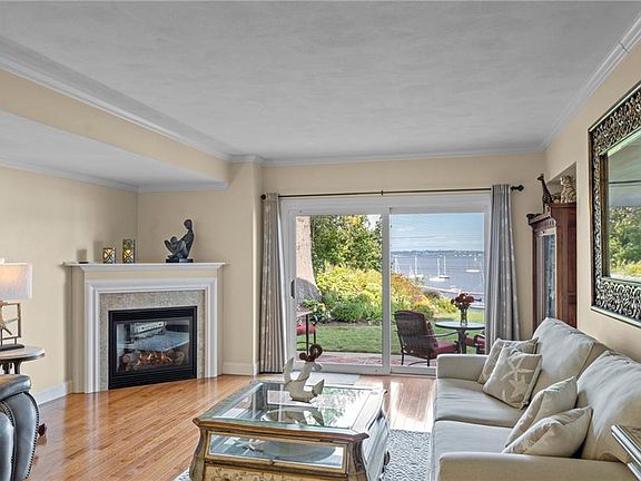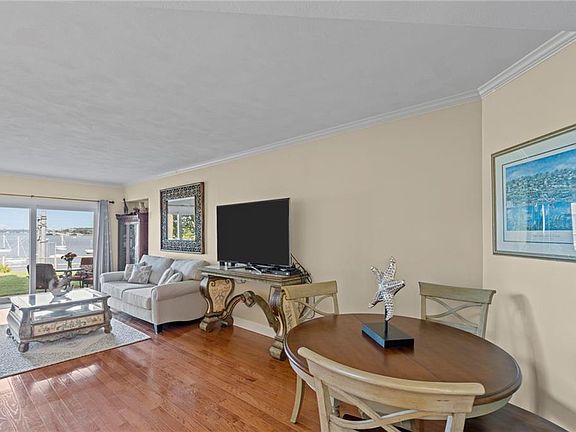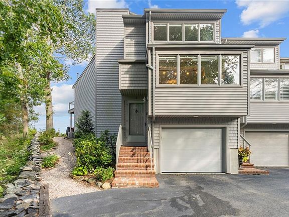 Rare opportunity in Harbour View a private waterfront community located minutes from historic Main St in East Greenwich. This Waterfront End Unit Townhome offers Panoramic Views of Greenwich Bay, gorgeous sunrises and cool bay breezes from both the lower patio and upper deck off the Master Suite. Completely updated with new kitchen, baths, and hardwood flooring throughout, this pristine 2 bedroom 2.5 bath 1 car garage Townhome offers a white and bright kitchen with center island, granite and stainless complimented by a soaring ceiling and wall of windows and skylights. The great room with corner gas fireplace leads to a patio with 24/7 waterviews. A stunning 2 story staircase with soaring ceiling and wall of windows leads to the second floor master bedroom suite with walk-in closet and guest bedroom with full bath and walk-in closet. Full lower level offers an abundance of storage and a finished laundry room with ample cabinetry and sink. Updated gas heat, central air and town water. Over $100k in recent improvements. Strong Association with many Capital Improvements including maintenance free siding, newer roofs, decks and more. This hidden gem is a short walk to historic Main St, restaurants, shops, theater, salons, marinas and yacht clubs. Close to highway, TF Green International Airport, Train Station and Goddard State Park (beach, trails, golf, equestrian and more). Discover Harbour View and fall in love