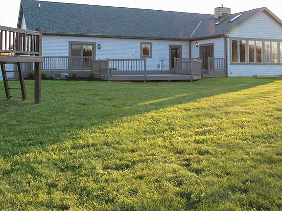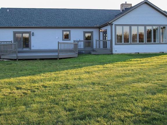 Picture perfect home for the buyer w/business or toys that need garage storage. Over 3300sf heated det garage. Mostly all brick Baltimore ranch w/5400sf finished living space on 5 acres w/addl. att 3car garage. Updated chef's kitchen w/new cabinets, SS appliances, granite counters & 2 tiered island w/down draft stove, vegetable sink & seating for 6. Spacious owner's suite w/HUGE walk in closet w/custom organizers, his & hers sinks, large shower & separate tub. Amazing open floor plan w/vaulted ceiling in kitchen, great rm & family rm that is loaded w/windows & divided by stone floor to ceiling FP. Jack/Jill BA separates 2 BR's, large Dining rm, office, large Rec rm, FB & 2 BRs in basement. Updates include new roof, wood flrs, AC,carpet,paint & much more! Agent owned