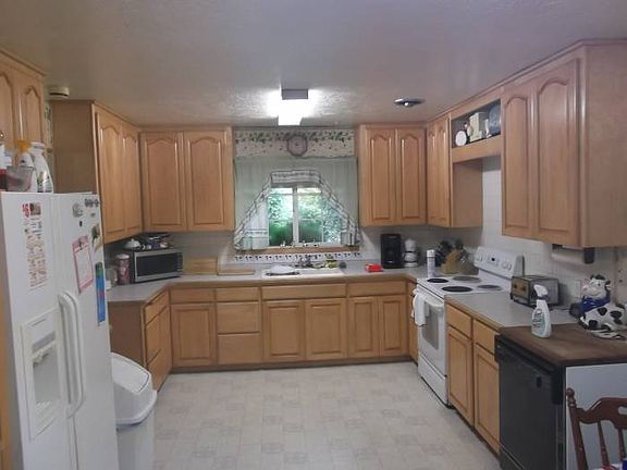 Lots of potential. Gardener's delight with apple, peach, blueberry, fig and strawberries. Home has vinyl siding and 2 workshops with skylights. Covered porch. Remodeled kitchen with lots of cabinets. Low maintenance vinyl siding. Cozy pellet wood stove. Large fenced yard. Two Storage Sheds. Brokered And Advertised By: Sundance Realty Listing Agent: Charlene Knudsen