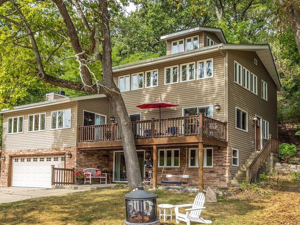Spectacular Delavan Lake Access Home with Included Pier & Shore Station. If you are looking for a Meticulously Maintained Lake Home that combines Everyday Vacation Presence with Elegance and Comfort, you will find it here. Wide Pine Casing around all Doors, Windows, and Trim, 1/2 Log Wainscoting and True Wood Flooring throughout the Main Level, T & G Pine Ceiling & Impressive Field Stone Wood Burning Fireplace in the Great Room, and Northwoods Accents Everywhere. Tile Flooring & Walls, Granite in all 4 Bathrooms & Kitchen, Hi-End S/S Appliances. The Boat Slip is only 90' away from the home!