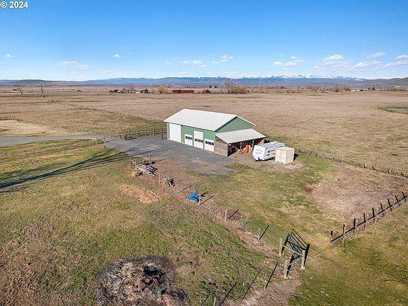 Discover country living in Haines, Oregon, with a stunning contemporary single-story home on 48.48 acres of beautiful pasture and irrigated land with excellent water rights. Built in 2009, this property offers modern elegance and rustic charm, featuring breathtaking mountain and valley views for a tranquil lifestyle. The home boasts three spacious bedrooms and an expansive living area with a cozy wood-burning fireplace. The gourmet kitchen is equipped with high-end appliances, granite countertops, and a Butler's pantry, perfect for culinary enthusiasts. Enjoy high ceilings, hardwood floors, and luxury amenities, including a central vacuum, high-speed internet, and a private outdoor living space with a covered patio and hot tub. The property includes well water, efficient forced air heating, and an attached garage, all within the EFU zoning for privacy and versatility. Located on Anthony Lakes Highway, it offers easy access to outdoor adventures and is within the Baker County School District. This is an extraordinary opportunity to own a piece of Oregon's stunning landscape, ideal for those seeking a peaceful retreat or a luxurious entertaining space. Contact us for a private viewing and make this dream home yours.
