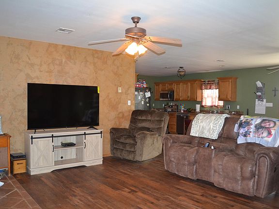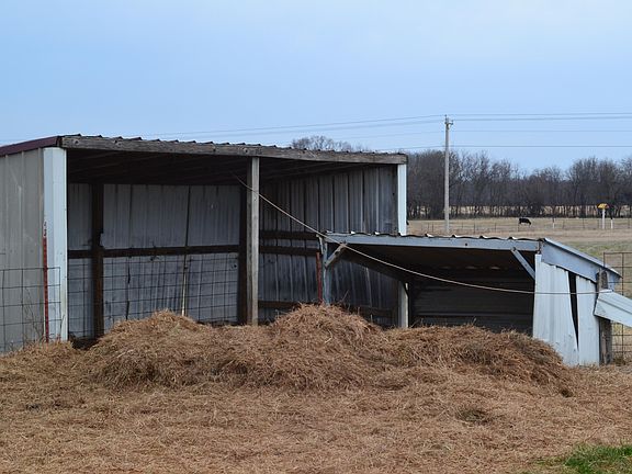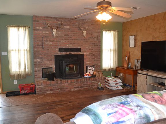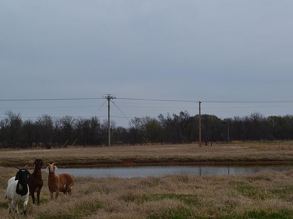 Hobby farm deluxe. This place will check off your list of wants. 3/2 with front porch sitting. Patio on side and back of home. New pellet stove insert. Storm shelter out back. Shop building with garage door along side and front. Railroad storage box. Property is fenced and cross fenced. Pond and small barn for goats. Fruit trees in yard. Newer HVAC, dishwasher, stove, and HW tank.
