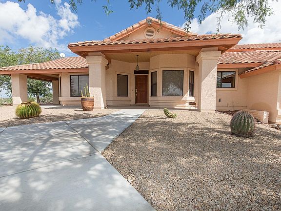 Perched on top of a hill with breathtaking views in every direction. Located in Terry Hills Estates on 5 acres the perfect setting for this beautiful custom home w/ detached RV garage. Beautiful open kitchen w/ granite countertops, kitchen island, wall oven and stainless steel appliances. Amazing tile floors, central vacuum, HUGE laundry room w/ tons of cabinets, 2x6 construction, green house, storage shed and much more. Master bedroom is located on main floor and 2nd master is located upstairs with private balcony. There is an unbelievable RV garage/man cave with not only space for a RV but all your other toys. The property borders AZ state land, gorgeous mtn view in every direction with great riding area. A HUGE are on back of lot for all your horses too!