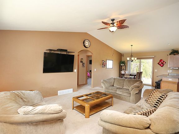 Beautiful ranch style home located on a cul-de-sac in South Kaukauna! Step inside to an open concept main living area with vaulted ceilings open to the dining area and kitchen. The kitchen includes a snack bar and the stove, dishwasher, microwave, and lower level refrigerator are included! A convenient split bedroom design provides a private master suite with crown molding, full bath including dual sink vanity, and a walk in closet. Off the garage entry is a mud room area and the main floor laundry room. On the opposite side of the home two spacious bedrooms and a second full bath complete the main floor living area. The lower level provides for all your entertaining needs with a large family room with wet bar and cabinets, additional game or dining table space, and a half bath. Additional features include a concrete patio with stone retaining wall off the dining area, concrete curbing, and an attached insulated & plastered 3 car garage.
