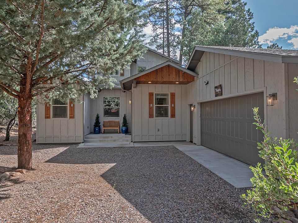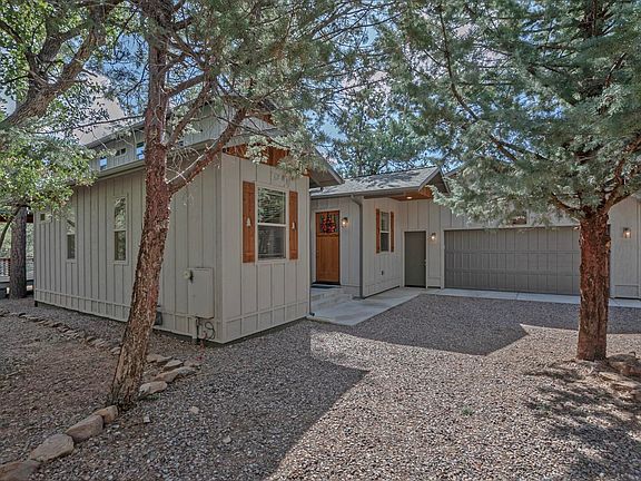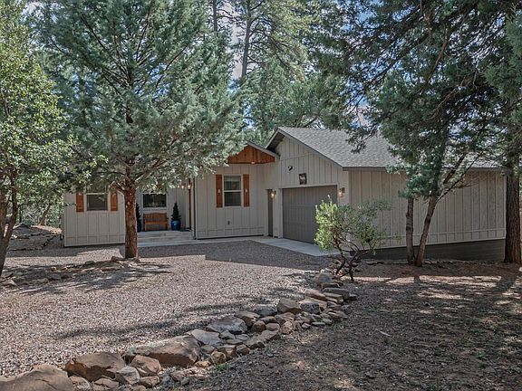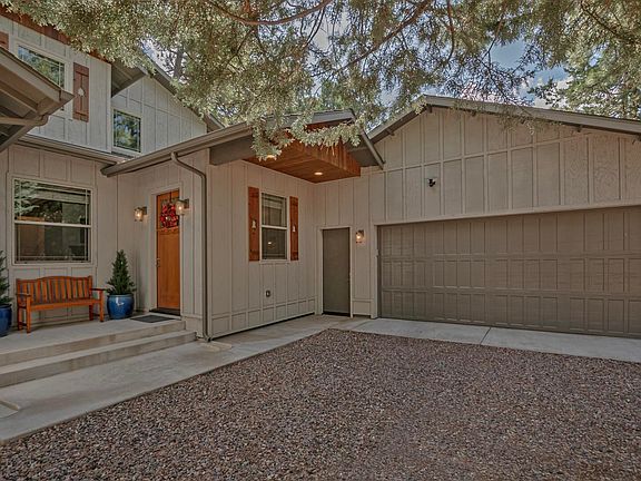 Nestled at the end of a peaceful cul-de-sac, this exquisite 3-bedroom, 3-bathroom home is a true gem, surrounded by the majestic presence of towering Ponderosa trees and Mountain Views. The property borders a common area, ensuring both privacy and a sense of natural tranquility. This meticulously maintained residence is immaculate and ready for its fortunate new owners to move in and make it their own. Upon entering through the foyer, you'll be welcomed into an inviting open floor concept on the main level. The spacious living area boasts an abundance of natural light, with large windows that offer picturesque views of the Mountains and Tall Ponderosa Pine Trees. The kitchen features custom cherry cabinets with slate wash, stainless steel appliances, honed quartz counters, and convenient island with a breakfast bar, making it a perfect hub for culinary endeavors and casual gatherings. The wrap-around deck overlooks the common area providing an idyllic setting to simply unwinding amidst nature's beauty. The first-floor master bedroom is a sanctuary of relaxation and comfort, featuring an ensuite bathroom and a walk-in closet. Heading upstairs, you'll find two additional generously-sized bedrooms with walk-in closets and a full bathroom. This home has solid maple floors throughout. It comes Turn-Key except for the master bedroom set. The attached oversized 2 car garage has enough room for workbenches. Plus, it has an extremely large storage area underneath the home. This home is a haven of comfort, style and tranquility. Don't miss the opportunity to make this remarkable home your own.