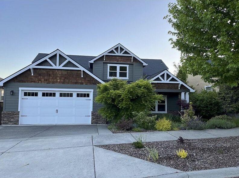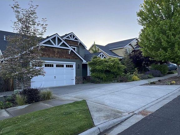 This is such a gorgeous home packed with hard to find features, a wonderful layout and located in a sought after E Medford neighborhood! Located in Vista Pointe with expansive views of the Rogue Valley and city lights, the home is a true 5 bedroom. The main level is open and bright with 18' ceilings in the living room, island kitchen with bar seating and a huge primary suite fully equipped with double sinks, soaking tub, step-in shower, walk-in closet and a private sitting deck. Upstairs consists of 3 additional bedrooms and a full bath. The home is in excellent condition with refinished hardwoods, new carpet in the master, newer stainless appliances and designer paint and lighting. In addition, there's dual climate control, a gas fireplace, abundant under-home storage, exterior hot water spigot and unique architectural features throughout. Beautifully landscaped, blocks to Oregon Hills Park and easy access to city services, this home has it all!