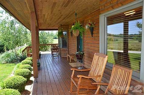 Epitome of country living on 4+ acres. . You will not find a more charming, well kept home both inside and out Looks like a picture post card. Inside decor is extensive hardwood and tile flooring, oak walls, box car siding ceilngs, skylights and abundance of windows, some with window seats. Very open floor plan with livng, dining and kitchen all open to each other. Living room has stone woodburing fireplace with insert. KItchen has Corian counters abd klarge island. Main level also has a large laun dry room with half bath, closet, sink and cabinets, and a guest bedroom with bath. A breezway connects the oversized 2 car garage. Upstairs is the master bedrom sutie with walk-in shower, and a living/office area. The walk-out basement, has a family room, bedroom with huge closet and bath with walk-in shower and unfinished area/furnace room. . Outside there is a wrap around deck on three sides of the home and three outbuildings. Located just minutes from Highland Springs and on city water and city gas .