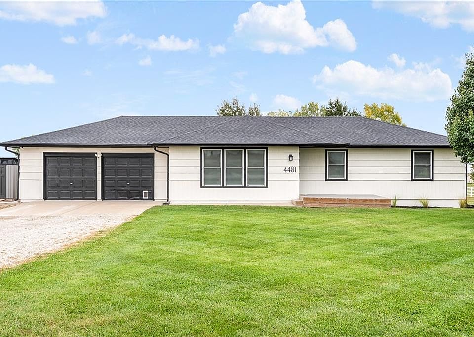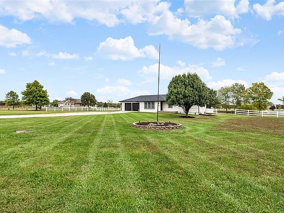 Relax on the front porch of this stunning home and enjoy breathtaking sunsets. Recently renovated with high-quality materials, this home exudes perfection. It features 3 bedrooms on the main level and a full-sized basement, already framed with an egress window in 4th bedroom, ready for finishing to add more space and equity. Sitting on nearly 2 acres, the property includes a large wooden deck overlooking a stocked pond. The roof is just 1 year old, and the home has fresh interior and exterior paint along with new windows and new flooring throughout. The remodeled kitchen includes a walk-in pantry, quartz countertops, and a beverage fridge conveniently located near the back porch. A custom-built fireplace and shelving create a cozy atmosphere you’ll adore. The oversized 24x26 two-car garage has been finished with OSB for added insulation, making it warmer during cold winter days.