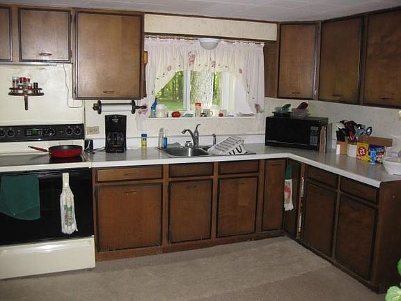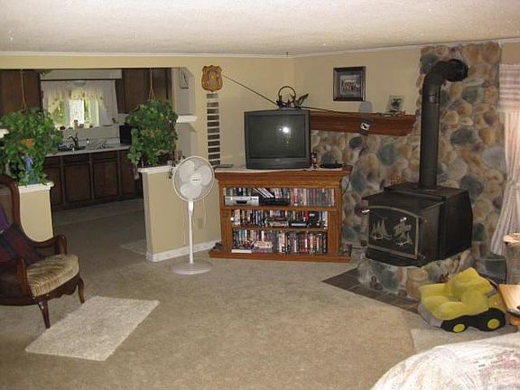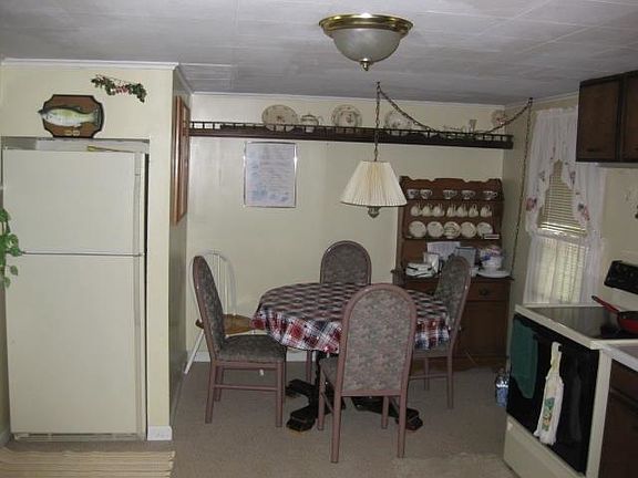 A nice 2 bedroom home/cottage with an open living area, woodstove in living area, pull down attic access, covered porch entry, vinyl siding and newer roof. Enjoy the large yard. The attached 2 car garage has workshop area. Circle drive.