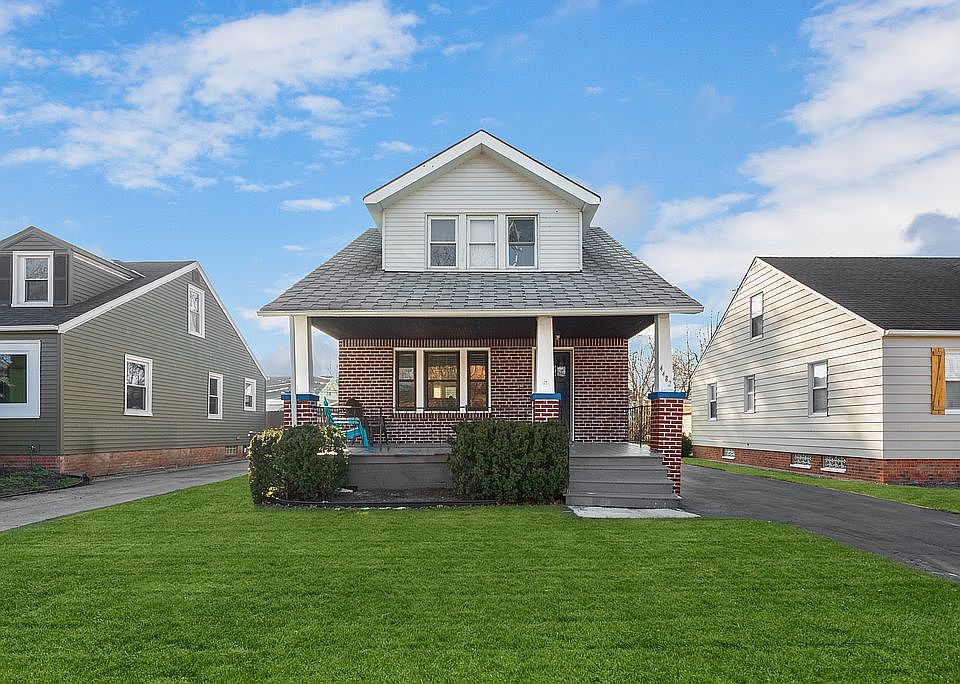 Charming move in ready brick Cape Cod in a wonderful South Euclid location central to all the area has to offer. A welcoming covered front porch greets you, perfect for sitting and relaxing. The interior features 2 bedrooms and 1.5 baths, dining area off the kitchen and living room with fire place. Off the dining room you will find an area perfect for a home office, crafting room, or play area for a child. The home features numerous updates including updated kitchen finishes, new windows on floor one and two, glass block windows in basement, laminate flooring throughout the first level, and updated electrical. All appliances included. This home is just waiting for your personal touches to make it your own! Rent to own financing available. Please inquire.