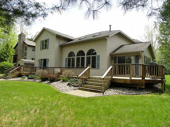 Lakefront living at its best. Breathtaking views from wrap around deck. Beautiful open great-room, kitchen and dinning area. Natural light from 2 skylights in vaulted ceiling. Upgrades include new furnace, blinds, sprinkler system and air conditioner. This home is beautiful designed with tons of storage, Large master suite with doorwall to deck, large master bath and walk in closet. Large upper loft is open to lower level great-room. Dock is included in sale. Enjoy this beautiful lake home this summer.Ownership of this property provides access to the 18 hole championship golf course, pro shop, restaurant & pub, indoor heated pool, tennis courts, bocce ball courts, chalet & sledding hill, walking (nature) trails, activity building, a 3,500 foot grass air strip, access to 2 all sports lakes, Lake Lancer/Lake Lancelot, and 15 beach clubs for quality family fun. ALL 2-1/2 hours from Detroit!