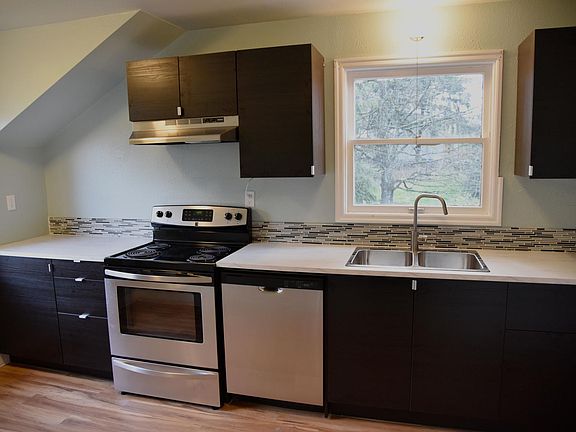Live among the trees in a roomy 3BR apartment near PCC, Lewis & Clark, Multnomah Village and more. Completely renovated kitchen with countertops and cabinets, flooring and stainless steel appliances replaced last year. Updated bathroom with new toilet, vanity sink, and flooring. With a view of the trees through oversized windows, a new roof, carpeting, washer & dryer in common area in basement, yard with apple trees, figs, and space for a vegetable garden, this 3BR/1BA upstairs duplex is a great place to call home. Near bus lines, walking distance to PCC, restaurants, coffee shops, bars, and more, yet peacefully away from it all. In a great school district (Markham, Jackson, and Wilson) with quiet neighbors on a quiet cul-de-sac that backs up to a creek. Pets OK as long as they meet our requirements at www.willamettemeridian.com. Please note the yard is not fenced in. This place will be available May 1st for a minimum 1-year lease. To schedule a showing, call or email using the contact info below. To apply, all applicants over the age of 18 must apply at https home.cozy.co/apply/299529. Tenant pays $30 for water/trash per person per month, tenant pays electricity. 1 year lease.