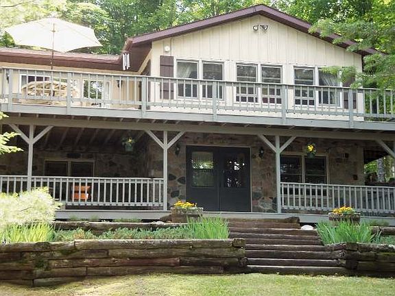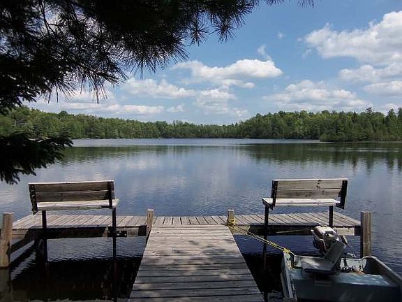 French Lake-Family Compound with room & fun for everyone! 2,170 ft of shoreline & 23.4 acres offering great swimming, fishing, walking, hunting & more! The home features a great room w/free standing wood FP, kitchen, & lakeside dining w/triple patio doors to a wrap around deck w/room for entertaining/grilling. The master bedroom offers a separate patio door to a lakeside room for your privacy. There is another bedroom, bath & large entry room. The walkout lower level has a rec room w/egress windows that could be additional sleeping area, bath, laundry room & patio w/fieldstone walls. The charming guest cottage has a free standing gas stove, pull out couches & lakeside wrap around deck. Includes a 2+ car garage w/heated workshop, fish cleaning & garden shed, 2 permanent piers, walking trail with bridge, landscaping, lakeside fire pit & picnic area & private boat landing. Easy access to trails & only 3 miles from the Turtle Flambeau Flowage. Priced to sell immediately at $495,000