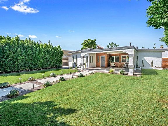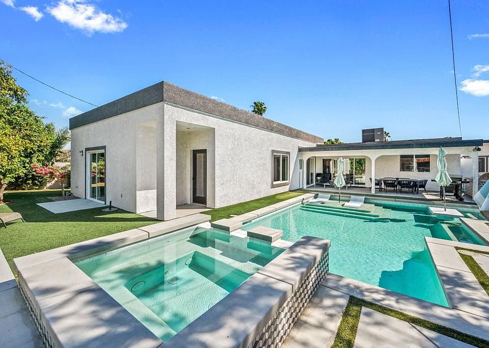 Now Accepting Back Up Offers!!! Offered turn-key fully furnished & no HOA's, this home is the epitome of lovely desert living. With its deluxe kitchen, entertainer's-dream-of-a-pool, gas fire pit, jacuzzi, built-in BBQ & 6 beautiful bedrooms & 4 bathrooms, this home is sure to please the most discerning buyer! Centrally located & designed to be comfortably used for entertaining, working from home & exploring, this is the perfect place for family & friends to gather & enjoy the desert climate in style.The front yard feels like a private retreat boasting lush privacy hedges & various cacti. The home features two primary suites, one w/ direct access to the pool, two spacious bedrooms that share a Jack & Jill bathroom, one of which has direct patio access, located on the opposite side are two additional bedrooms & 1 full bath, one bedroom also has direct pool access. The back yard is perfect for entertaining year around w/ its spacious patio, BBQ, fire pit, jacuzzi & luxurious modern pool right outside of the kitchen & main dining area. The house is built to wrap around the pool & create a unique oasis feel. For investors: this house regularly hosts renters & has over $45,000 gross rental income lined up from November to May that can be transferred to the new owner. The front yard also has room for an ADU. Located a short distance from world class golf, tennis, hiking trails,The Living Desert, El Paseo shopping district.