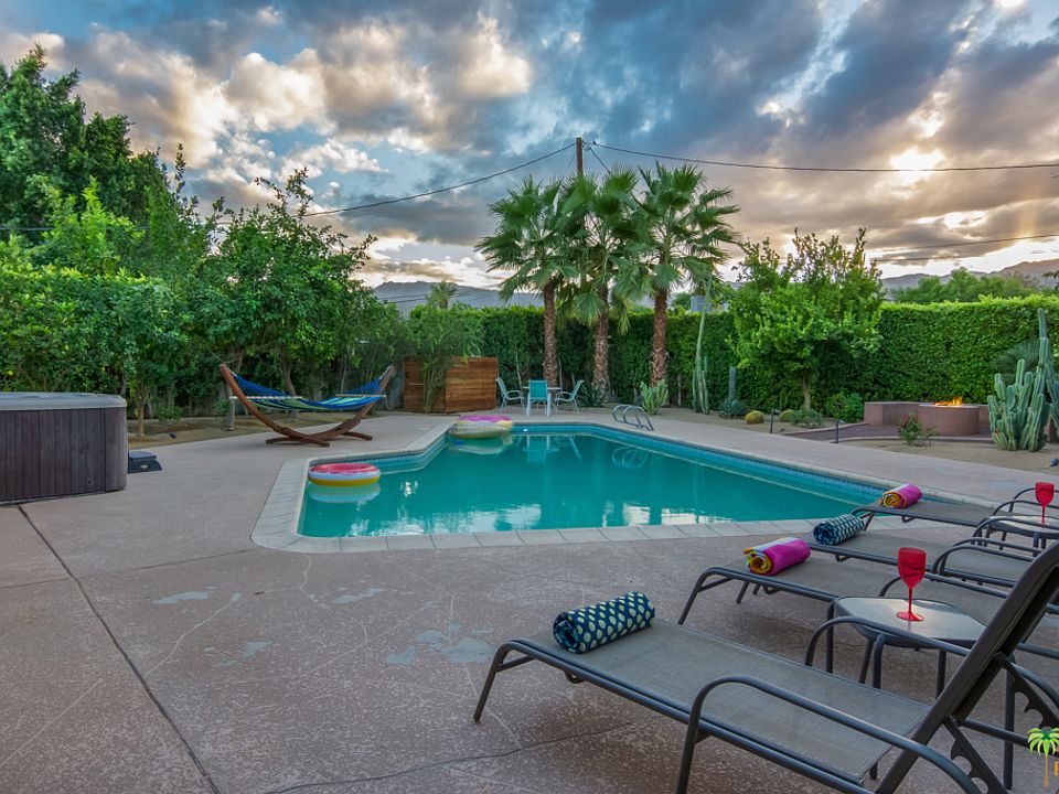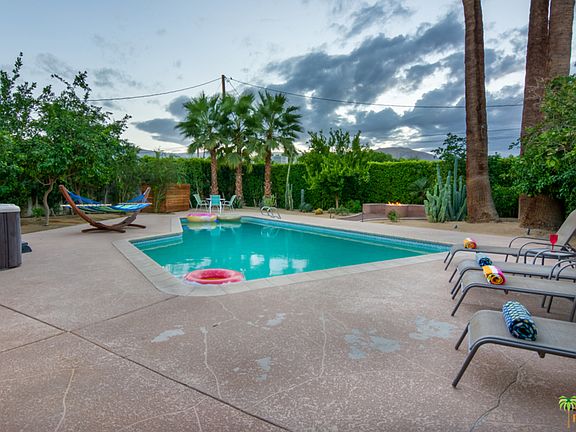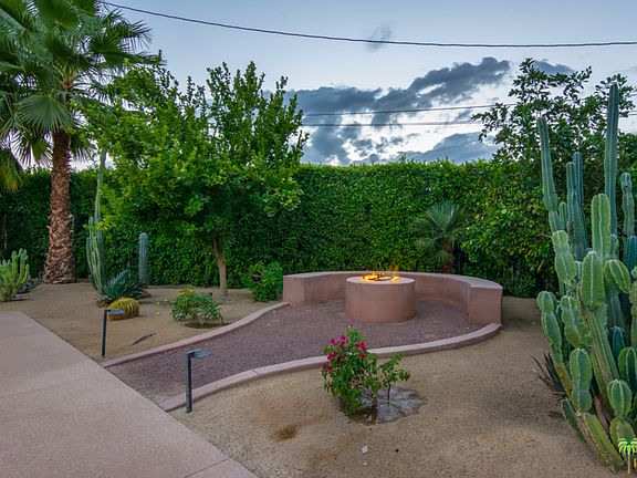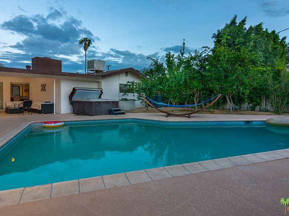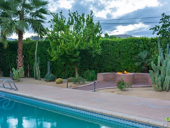 This gorgeous garden home is like living in your own desert oasis. The front gate opens into a private entry courtyard and well manicured bougainvillea greet you on your way to the front door. The interior of the home features 3, sizeable bedrooms, 2 bathrooms with updated showers, and a large great room. The flooring has recently been upgraded to a hardwood laminate and the property has been freshly painted! Once you step into the backyard, the lush green of the landscaping, accented by the gorgeous backdrop of the San Jacinto mountains and the inviting pool create a private retreat you'll love to come home to. There is a recently installed firepit for chilly desert nights as well as an above ground spa and mister system. Not to mention, the property is solar powered! Please call for an appointment today!