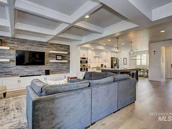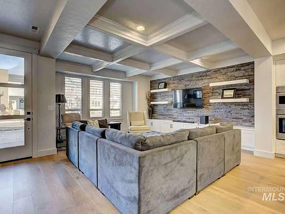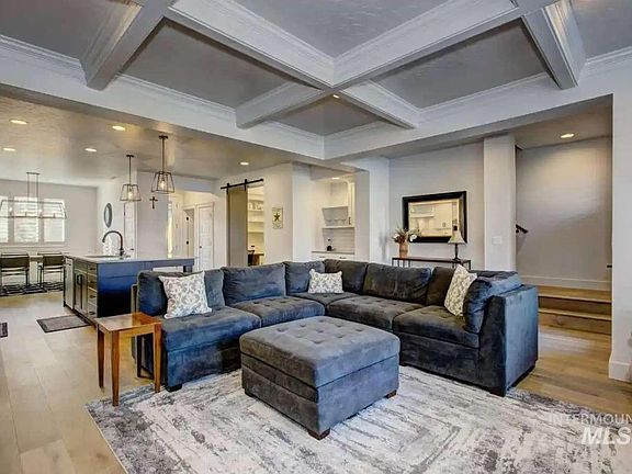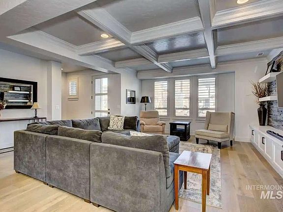 This modern townhome offers exquisite interior finishes and charm. The floorplan provides a seamless flow from the living space into the dining & kitchen areas. The beautifully mastered living room has coffered ceilings and built in entertainment center with stone accent. Home has all the luxuries from the hardwood floors, abundant soft-close cabinets, quartz/granite countertops, and tons of storage space. Master bedroom has large walk-in closet, spacious master bath with walk in shower. Laundry room is on the same floor as the bedrooms. Spacious office with built in desks to work from home or perfect for doing homework. Fully fenced yard for pets and patio area for entertaining. Harris Ranch owners have use of the neighborhood community pool which is a two-minute walk from the house. This property is nestled a few blocks between the Boise River and the Boise Foothills, both within walking distance. You can walk or ride your bike on the greenbelt to Miriam Park where you can fish, picnic or play.