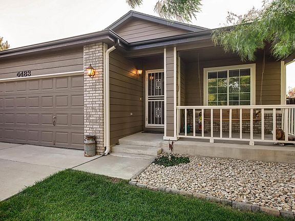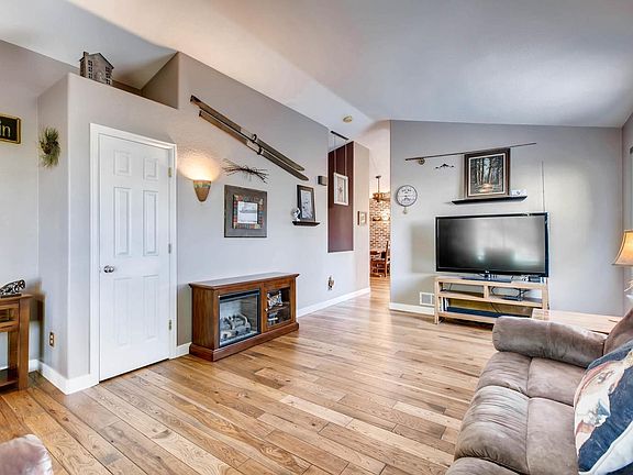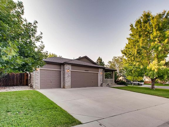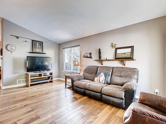 Amazing opportunity to own a 5 bed/3 bath, 3 car garage ranch home with a finished basement, in quiet cul-de-sac in Founders Village, Castle Rock! The main floor of this home includes: family room, kitchen, dining space with gas fireplace, 3 beds, 2 full baths, and laundry. Modern rustic finishes accent the interior with features such as: hickory hardwood floors, real brick accent wall, full slat knotty pine wood ceiling in master bedroom, special ordered island, and custom made pot rack. Home also includes fully finished basement with huge rec room, 2 bedrooms, full bath, craft room, and flex space with laminate hardwood flooring great for an office or for working out/yoga. This home sits on a private, nearly quarter of an acre, lot with front porch, mature trees, patio, sprinkler system, A/C, and shed. Minutes away from parks, trails, community pool, schools, and grocery store. A great long term investment for a great price in growing C-Rock!