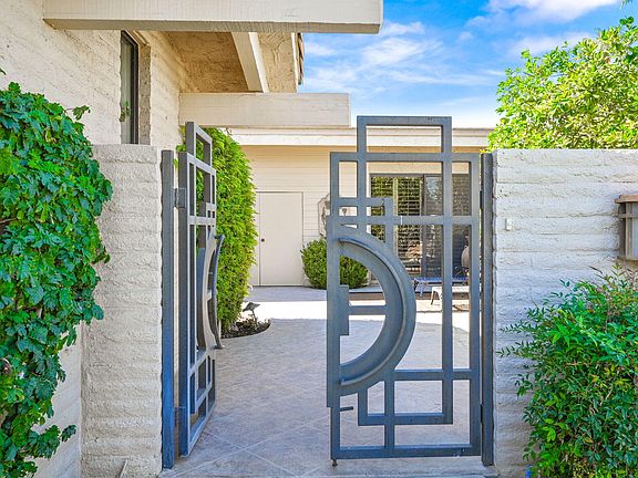 Welcome to your sanctuary and a carefree lifestyle, surrounded by the unique and mesmerizing beauty of the desert. This home sits on a quiet interior location, inside the gates of Indian Wells' prestigious Desert Horizons, one of the desert's most intimate and desirable private country clubs. Known as a Garden floor plan, this 3 bedroom/3 bath home has a casual elegance perfectly suited for entertaining family and friends. Entering through a tranquil, private, front courtyard takes you into a spacious living and dining room from which you can enjoy westerly views overlooking the back patio and serene greenbelt beyond; all just steps away from the community pool. The updated kitchen is sure to please with craftsman quality cabinetry, stone countertops and a charming breakfast nook. A luxurious master and ensuite offers maple grain cabinets, granite counter tops, a large shower and walk-in closet. Classic plantation shutters can be found throughout and each bedroom enjoys direct access to the outdoors spaces. Unquestionably, a perfect place to call home !