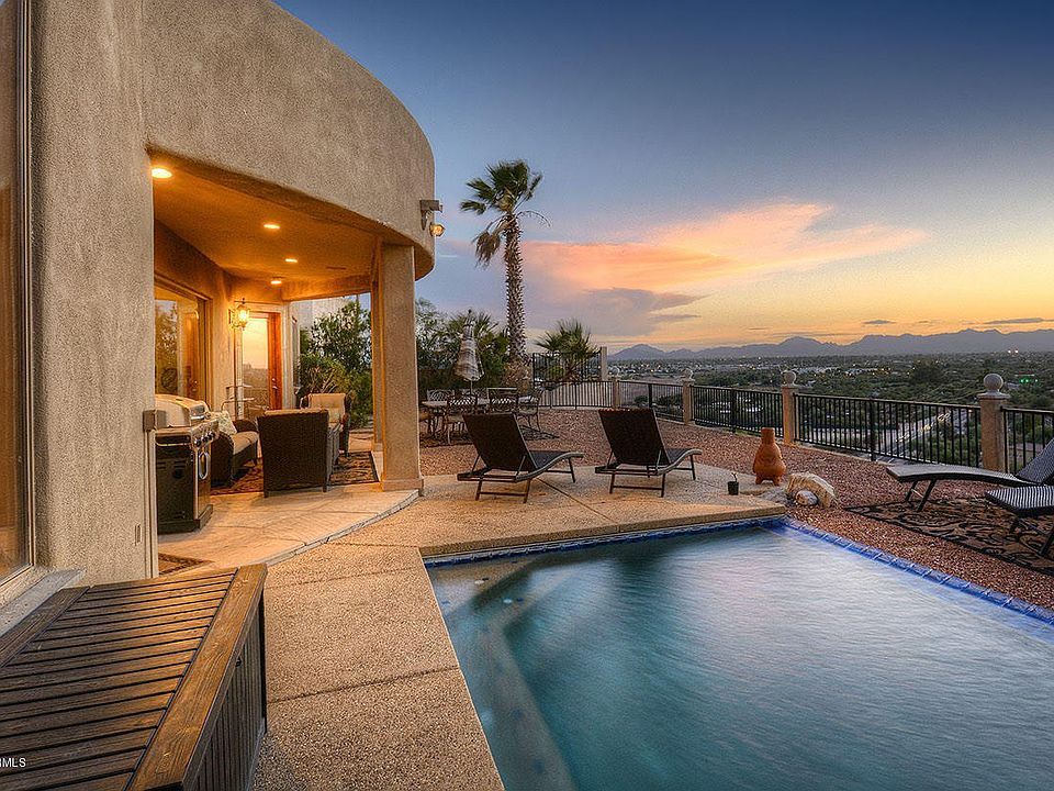 Stunning house sits high on a hill with spectacular views of the Santa Catalina Mountains and city lights. Features 4 bedrooms, 3 bathroom, massive greatroom open to dining area and kitchen, split bedroom plan, sparkling pool, 3 car garage