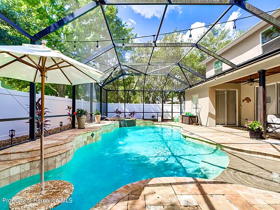 - Pool features: Fenced, In Ground, Pool Sweep, Salt Water, Screen Enclosure, Waterfall