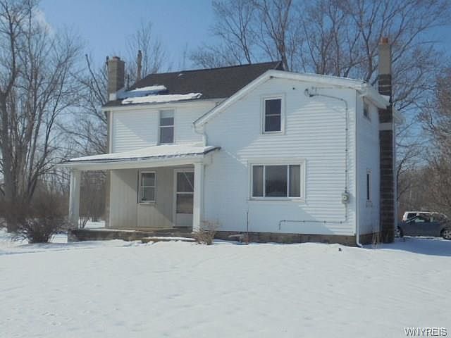 Three bedroom, 1 bath colonial, situated on 5.8 acre corner parcel irregular in shape. Large country kitchen with pantry, formal DR with woodstove, large LR, an extra room could be storage closet or small office. First floor full bath.Three bedrooms on floor 2. Full basement with 4 yr old forced air furnace & updated 100 amp service. Roof 2013. Porch roof needs replacement. Furnace 2013. House is in need of updates and rehab. Detached barn, approx. 30 x 50 constructed in 1955 needs roof repair, however, has possibilities. To settle estate.
