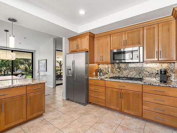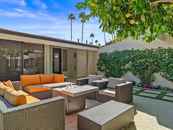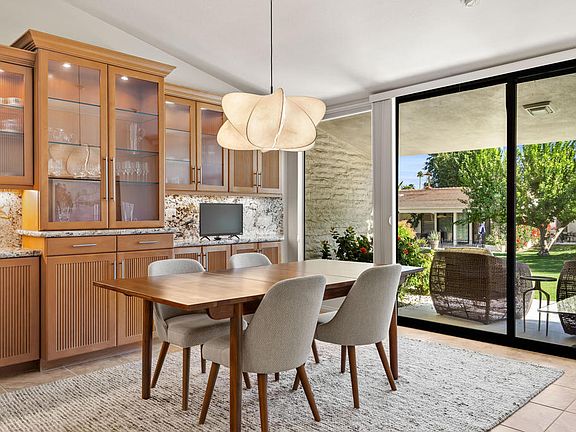 A Perfect Desert retreat in the heart of Indian Wells. Welcome into the charming front courtyard that is completely private and peaceful. Enter the home through lovely double cut-glass doors and you are invited into this wonderful remodeled Contemporary floor plan. The interior upgrades include recently interior painting, an abundance of custom cabinetry, granite counter tops, stainless appliances, gas cooktop, double ovens and a microwave. This great room floor plan offers 3 bedroom suites and over 2,500 sq. ft. No expense was spared while smoothing out some of the exterior walls as well as finishing the garage with epoxy floors, newer garage door and cabinets. Additionally, newly added LED lights, electrical plugs/switches and new hot air vents, filters and cleaning of the system. Primary bath has new cabinets and quartz counter top. The third bedroom has a Murphy bed, built-in cabinets and work stations. And the best for last .. new roof and OWNED solar. Perfect!