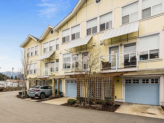 The Current at River's Edge! Live just steps to the Vedder River, green streets & short drive to shopping @ Garrison in this ~1500 sq ft townhome boasting an airy open main floor, crown moulding, beautiful kitchen w/quartz counters, gas range & sleek stainless steel appliances. South facing fenced yard w/access from your oversized living room, gas f/p plus dining room w/additional deck perfect for savoring morning brews or hosting soirées under the stars! Retreat to the upper level featuring 2 bedrooms, including primary suite w/two closets & a lovely 5-piece ensuite. The tandem garage is MASSIVE w/enough space for 2 cars & storage or use for parking/ workshop! Pet friendly, no size restrictions, schools nearby & endless amenities all surrounded by nature for an amazing lifestyle.