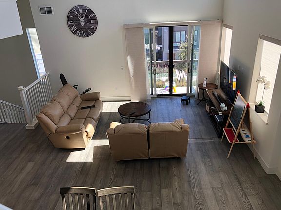 With a private tandem garage garage located on the first floor, the home is located on the third and fourth stories. Two bedrooms, including the luxe owner's suite, are situated on the third floor along with the open living area featuring a kitchen, dining room and upper deck. A third bedroom with en-suite bathroom and loft space is located on the top floor Virtual tour not the actual tour Washer/Dryer and Refrigerator in the house. small pet ok and no smoke. 2 car tandem garage + open parking in the open are ACCESS TO BART, PARK, GROCERY *1 mile to Warmspring BART station, 1 mile to Warm Spring BART station * 1.5 miles to shops and restaurant *0.5 miles to HWY *5 mins walk to park and fremont new Lila Bringhurst elementary Owner pays HOA, tenants responsibility for water, Gas and Electricity, garbage and cable TV/internet. Available to show now ready to move in after June 21. Detail email us for more info