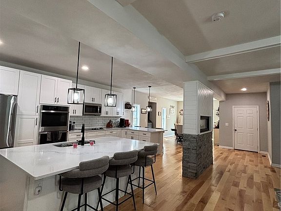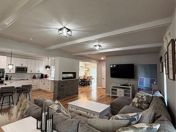 Welcome to this beautifully remodeled two-story home. This stunning home offers four spacious bedrooms and three full bathrooms, including a master suite with a walk-in closet the size of a bedroom. Since 2024, this place has been meticulously redone, electrical, plumbing which includes a tankless water system, heating and air conditioning. This almost 4000 square foot home has had almost every inch of the interior redone, with all-new features and finishes throughout. A convenient second-floor laundry makes washing clothes a breeze. This home offers the convenience of two new central air conditioning units and furnaces, ensuring comfort on every level, controls either the upper or lower zone of the home. Boasting a sleek modern design with an L-shaped counter and a big island in the kitchen. A see-through fireplace connects the kitchen and living room. The living room has a small room off of it for a small toy room, office or even a pet room. The original staircase was refinished and painted, preserving a piece of the building's historic feature. Recently, the driveway was expanded for more parking space. Also in 2024, a custom heated in-ground pool was added, complete with a 24-foot deck, expanded concrete patio space, and a brand-new fence that encloses the entire pool area. The pool has a sun deck which is perfect for your beginner swimmers or just relaxing in the pool. Included with the sale is a beautiful hot tub to relax in. There is a beautiful stream that runs through the back of the property, backing up to a wooded lot.