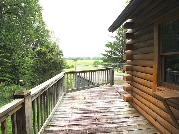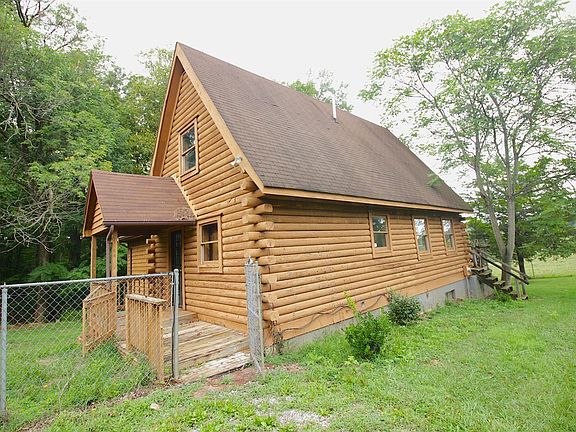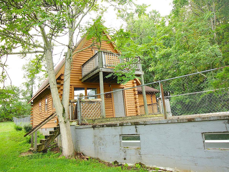 Charming and cozy Log Home offering a rustic yet modern feel. Needs some work but offers a beautiful wood interior, Large main level Master with On Suite and dbl. closets, kitchen with Eat In, pantry, and gorgeous stone w/ wood burning stove. Upstairs offers 2 good sized bedrooms, 1 offering a private Deck (CAUTION may not be safe) and the other offering a half bathroom. Basement consists of potential den, second wood stove, full bathroom (some mold present), newer hot water heater and bonus room (no window/closet). Exterior features a large storage room/workshop under the concrete porch, a metal garage and second out building all on a private 1 acre lot. Mountain View from the concrete patio and fenced yard.