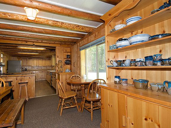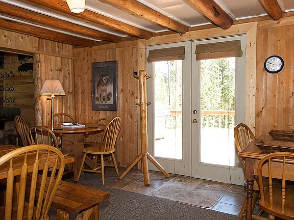This extraordinary cabin sits on 5 acres located on the east side of Island Park, offering direct access to snowmobile or ATV trails from the front door amidst beautiful mountain ranges. The open floor plan and spacious great room provide a welcoming space for camaraderie. The cabin features a bunk area ideal for 10 kids, and the back deck and patio with a large fire pit nearby are perfect for outdoor enjoyment. Originally a bed and breakfast, the cabin boasts a large commercial kitchen, making it convenient and fun to cook with family and friends. The Grey Wolf Retreat is a place to build traditions and memories for many years to come. The cabin's key amenities include self check-in, a commercial kitchen, propane grill, fireplace, fire pit, some outdoor seating, DVD player, VHS player, a variety of family-friendly movies, washer and dryer, dishwasher, and a fully stocked kitchen with pots, pans, utensils, dishes, glasses, and a drip coffee pot. A Pack-n-Play is available, but guests should bring their own linens. Wi-Fi is provided. The cabin offers a large driveway, garage, and plenty of room for trucks and toy haulers. Access to hundreds of miles of snowmobiling and ATV trails is available right from the front door. Located in a mountain town, this cabin offers access to dirt roads and slow speed limits, with appropriate vehicles recommended for the conditions. In winter, 4-wheel drive, snow tires, and high ground clearance are recommended. The cabin is about a 27-minute drive to Yellowstone West Entrance, a 12-minute drive to Henry's Lake for fishing and water activities, and a 30-minute drive to Island Park Reservoir. The nearest grocery store, Robins Roost, is about a 2-minute drive away. Nearby airports include Idaho Falls Regional, about a 1.5-hour drive, Bozeman Yellowstone International, about a 2-hour drive, and Jackson Hole Airport, about a 2.25-hour drive. The cabin does not have air conditioning, but guests can utilize blinds, ceiling and floor fans, and the crisp evening mountain air to keep cool. There is no cable or satellite TV, and no sleeping bags, air mattresses, RVs, tents, or pets are allowed, with no exceptions. Events are not permitted, with a maximum occupancy of 20 per local ordinances.