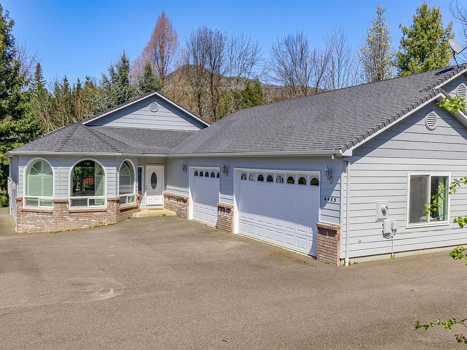 Close in town convenience in East Medford on a hard to find spacious .52 acre lot. Spend your evenings on the large covered deck overlooking mature landscaping w/a bridge over Lazy Creek connecting you to your own private deck & sitting area. This single level home offers an open floor plan w/solid wood floors in the entry & kitchen, vaulted ceilings, & large widows & skylights. Light & bright kitchen w/stainless appliances, gas range/oven, granite counters & large island w/breakfast bar. Master bedroom w/slider to the back deck, walk-in closet off the Master bath w/dual vanity & walk-in shower. Home is completed w/2 large bedrooms, 3 full bath. There's plenty of parking in the finished garage that can fit 4 cars tandem or convert the back area into your dream shop. Use the additional parking areas for a large RV & all your toys. Don't miss out on this one!