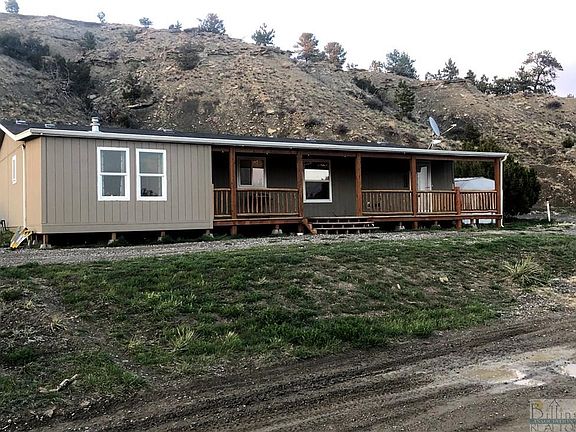 Beautiful home on 20 acres just 15 miles west of Billings MT. This 3 bed, 2 bath, 2 living room home on a permanent foundation makes financing a piece of cake. Tons of trees make for a great view from the newly built covered deck perfect for entertaining! There is also a new mudroom built and new well pump installed in 2019. A 26 x 36 shop with a propane heating unit built in 2016 is the perfect place for projects or parking vehicles! Inside boasts vaulted ceilings and a pellet stove perfect for winter time. Propane system is rented. Well-Cistern has a water softener. North property line is the fence. 4 wheeler trail on the West side to the top. 1,000 gallon propane tank.