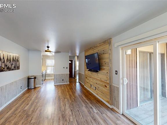 Come take a look at this lovely 2-bedroom 1-bathroom condo, using our 3D Virtual Tour. Situated in central Colorado Springs, near N. Carefree and Oro Blanco, with Academy Blvd. nearby, this property is near tons of amenities including restaurants, schools, medical, Village Green Park, Penrose Park, and more. It is also close to I-25 and within a short drive to all our local military bases. Head inside to an open and spacious living area with gorgeous wood floors, and wood paneling on the walls creating a warm and inviting space. A nice patio area is also right off the living area, offering views and relaxation. The kitchen is nice, and has updated floors, beautiful stainless-steel appliances, nice cabinetry, and ample storage space. Master bedroom has the same attractive flooring as the rest of the condo, a large closet, and patio access. The additional bedroom is spacious, with a good size closet. The bathroom features two-toned wood paneling on walls and backsplash, a dual shower jet tub combo, with updated fixtures and hardware, giving it a nice contemporary feel. Additional highlights of this condo are it’s updated farmhouse style doors and hardware, the clean and well-kept grounds the property sits on, as well as the on-site pool and clubhouse! With its ideal location near all major amenities, and a warm inviting interior, this is one you won’t want to miss!