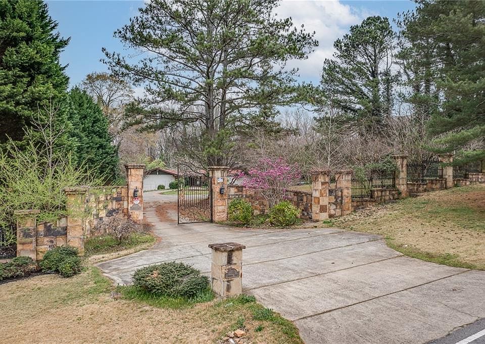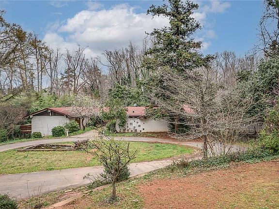 Incredible opportunity to own a rare Mid Century Modern property situated on over an acre and a half across from gates to Atlanta Country Club! Enter your wrought iron gated property to circular drive and sprawling ranch on basement! Over 5000sqft with pool waiting to be restored to her original beauty! This home was built for entertaining with indoor/outdoor flow everywhere you turn. Wide open living spaces with views to private backyard surround original stone details and fireplace focal point. Owner's Suite and 2 large secondary bedrooms line one side of home with deck spanning the length and access from all 3 rooms. Fourth ensuite bedroom on main level as well. Basement holds fifth bedroom & full bath along with flex space to create what speaks to you. The backyard holds large concrete & brick terraced patio with pool, all fully fenced. We can't wait to see what the perfect owner does to restore this sophisticated property on one of the most sought-after streets in Metro Atlanta!