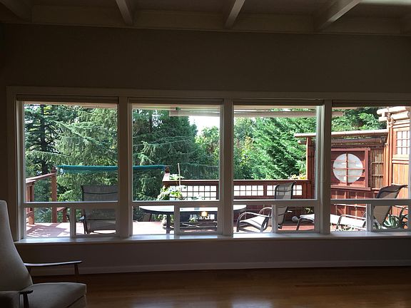 Privacy, Walk to hospitals, Hike/Jog/Bike Fairmount One of the few rental homes nestled in the Healy Heights area of Council Crest above OHSU and Fairmount Blvd. It's a 1940 2 bedroom 2 bath 2200 sq ft split level with huge sunny windows, sunset views, hardwood floors, wood fireplace, whole house stereo and home theater, burglar alarm, 10' ceiling in living room, separate dining room, walk in closets, skylights, patio, private Japanese style deck, hobby workshop. One mile or a 22-minute walk to hospitals, 2 blocks to #51 bus, twelve-minute 2.8 mile drive to central downtown. Ainsworth, West Sylvan and LIncoln schools. Healy Heights park one block away. Good parking in low crime area. Thickly landscaped front and back yards with organic garden space and wooded lower lot. End of dead end road, with woods all around feels like you re in the country, but only 10 minutes from downtown. Central location provides access to all of Portland, last renter walked to work. The house is sure to provide rare relaxing privacy for study or research. Note: Google Streetmaps view is of wrong house Home has been fully insulated, with double pane windows, cellular shades and gas furnace which keep heating bills low. All utilities paid by tenant except garbage. No smoking, Maximum 2 cats over that are spay/neutered. Renter's iunsurance, valid rental history or references and a $19 application fee, (which will be used for credit/criminal/background and employment verification) are required. 18 month minimum lease, $2550 per month, possible discount for yard work. Available September Security deposit $2700, $200 refundable cleaning fee due at move in. Home is intentionally low key from the street, lots of bushes. Don t just drive by, go ahead and call, you need to see this amazing house from the inside. Enjoy an amazing Portland gem. renters insurance, $19 background check, no smoking, no dogs, minimum 18 month lease.